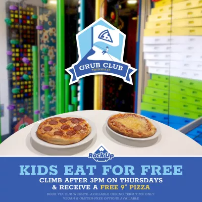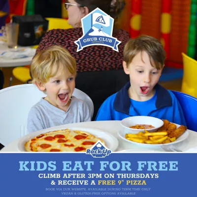 Let's set the scene: It's Thursday, school's out, and the kids are buzzing with energy. Sound familiar? Here's where we come in. Every Thursday during term time, after 3pm, Rock Up becomes the ultimate destination for fun and food – where kids eat absolutely free!